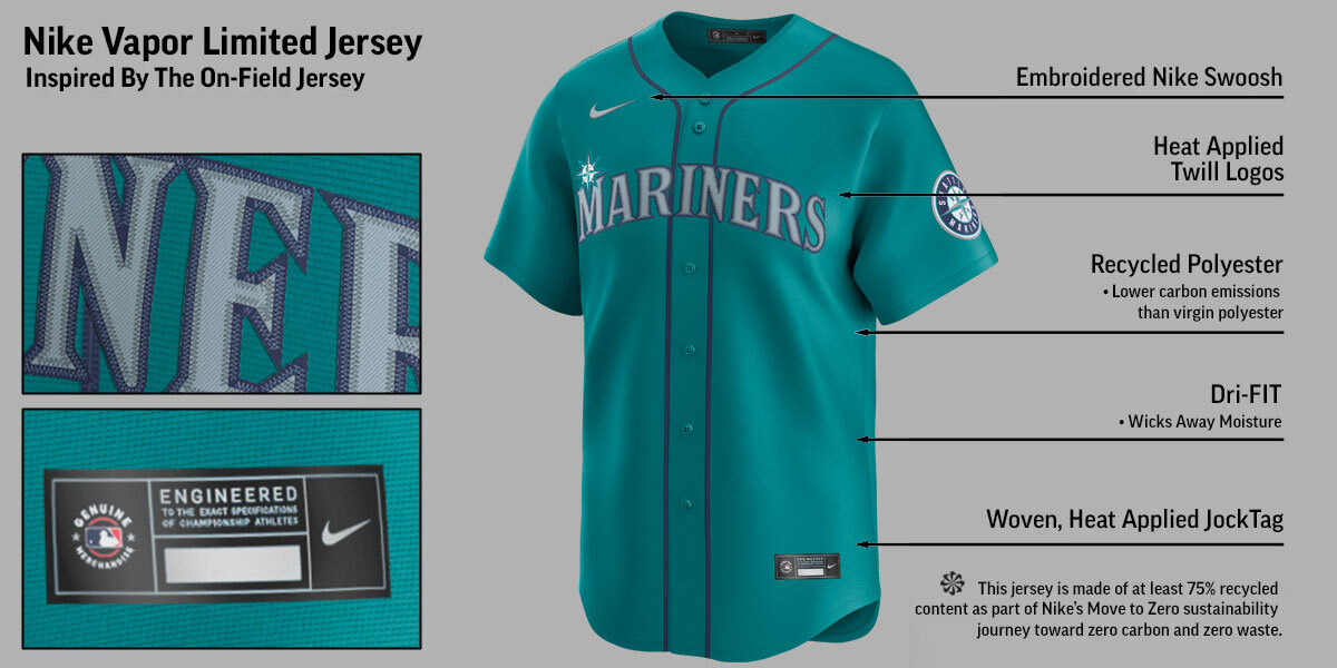 Introducing the pinnacle of athletic apparel innovation: the NIKE® Limited Jersey Collection. Crafted for champions, this exclusive line of jerseys embodies the essence of performance and style, elevating your game off the field. Get noticed with the Jhonathan Diaz Seattle Mariners Alternate Green Limited Jersey.